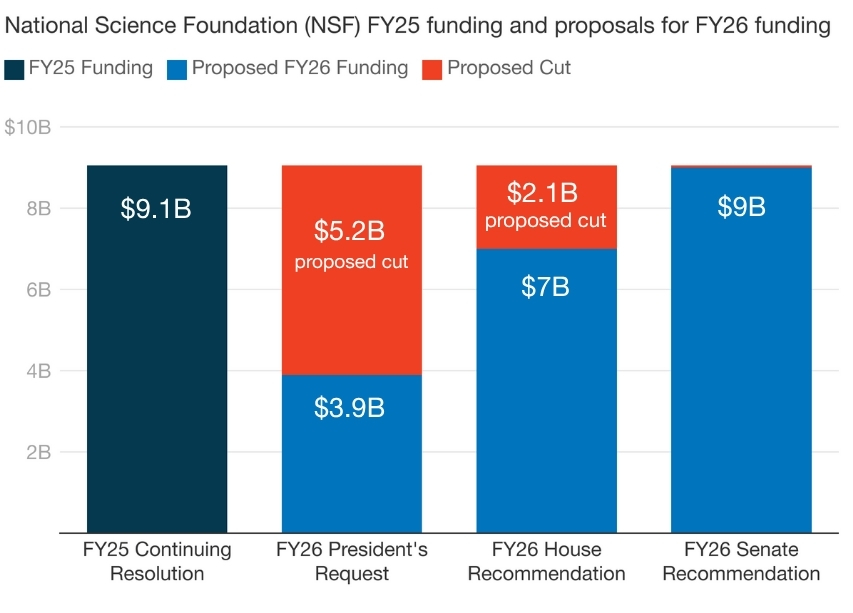 The Association of American Universities (AAU) urges Congress to fund the National Science Foundation (NSF) at $9 billion for FY26, the funding level approved by the U.S. Senate Committee on Appropriations in July. Funding the NSF at this level will enable the United States to maintain and strengthen our global leadership in scientific innovation.