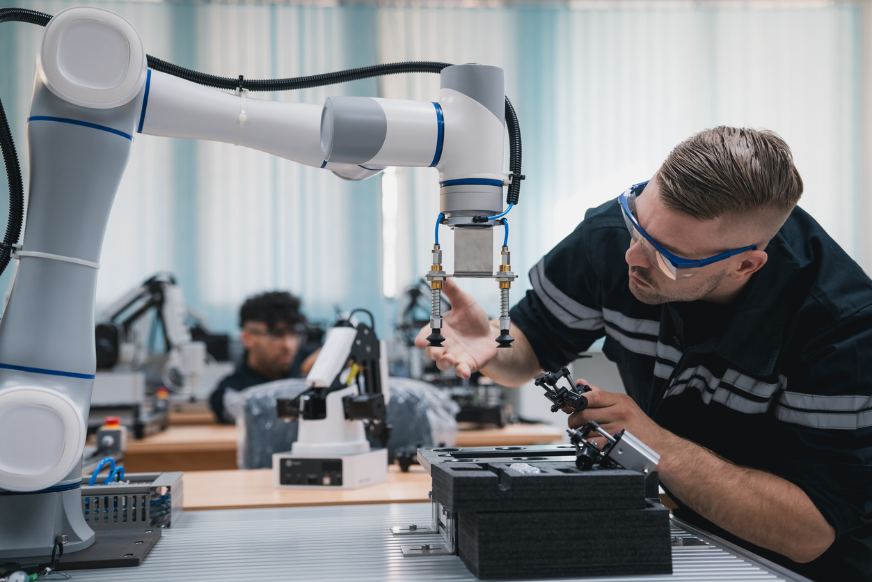 Engineer working with robotic arm.